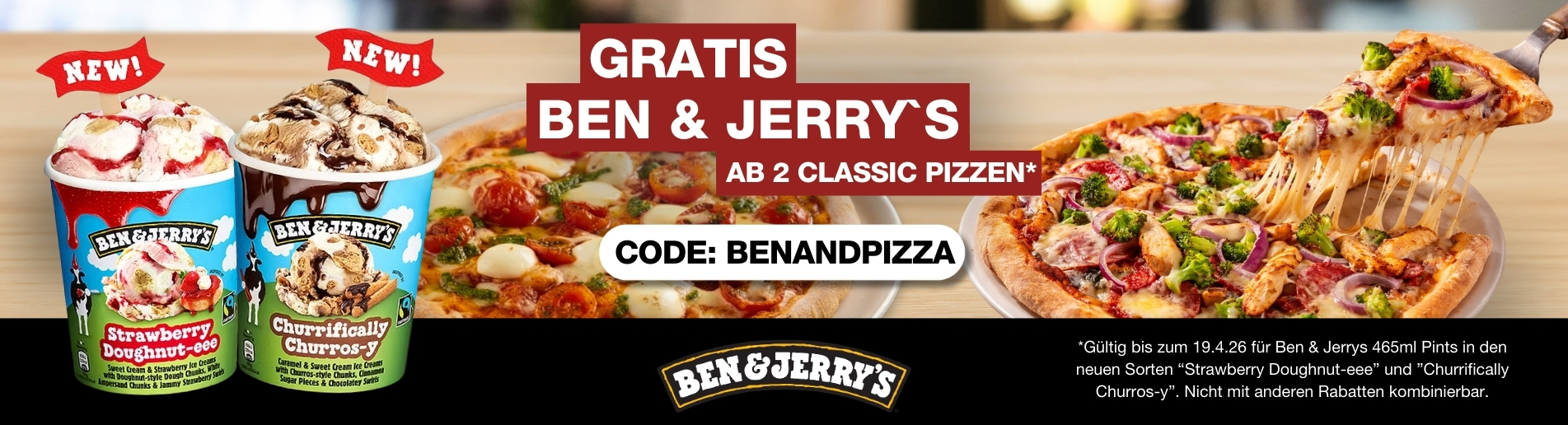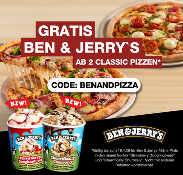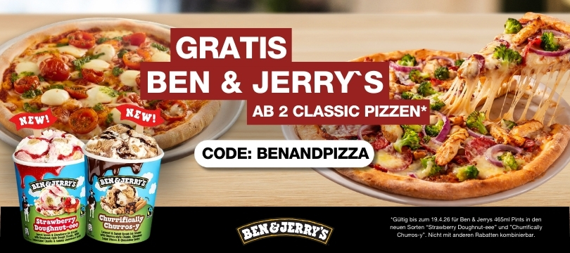 Ab 2 Classic Pizzen gibt’s ein Ben & Jerry’s 465ml Pint in den